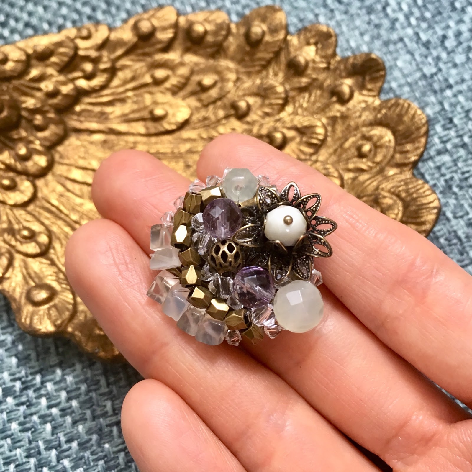 天然石をみっしりと編み込んだ