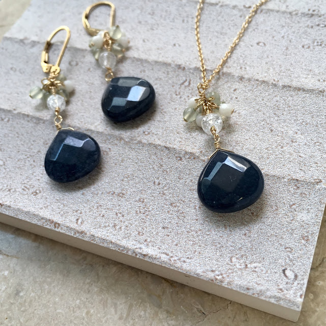 ほわっと乳白色のホワイトジェイド、と合わせた