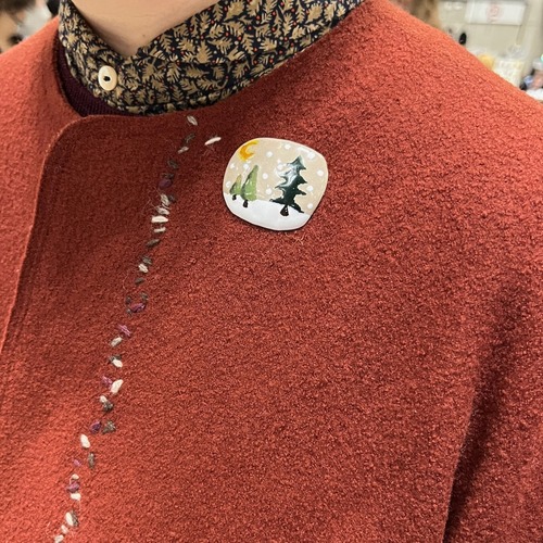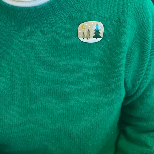 七宝焼ブローチ / 雪の森*月あり