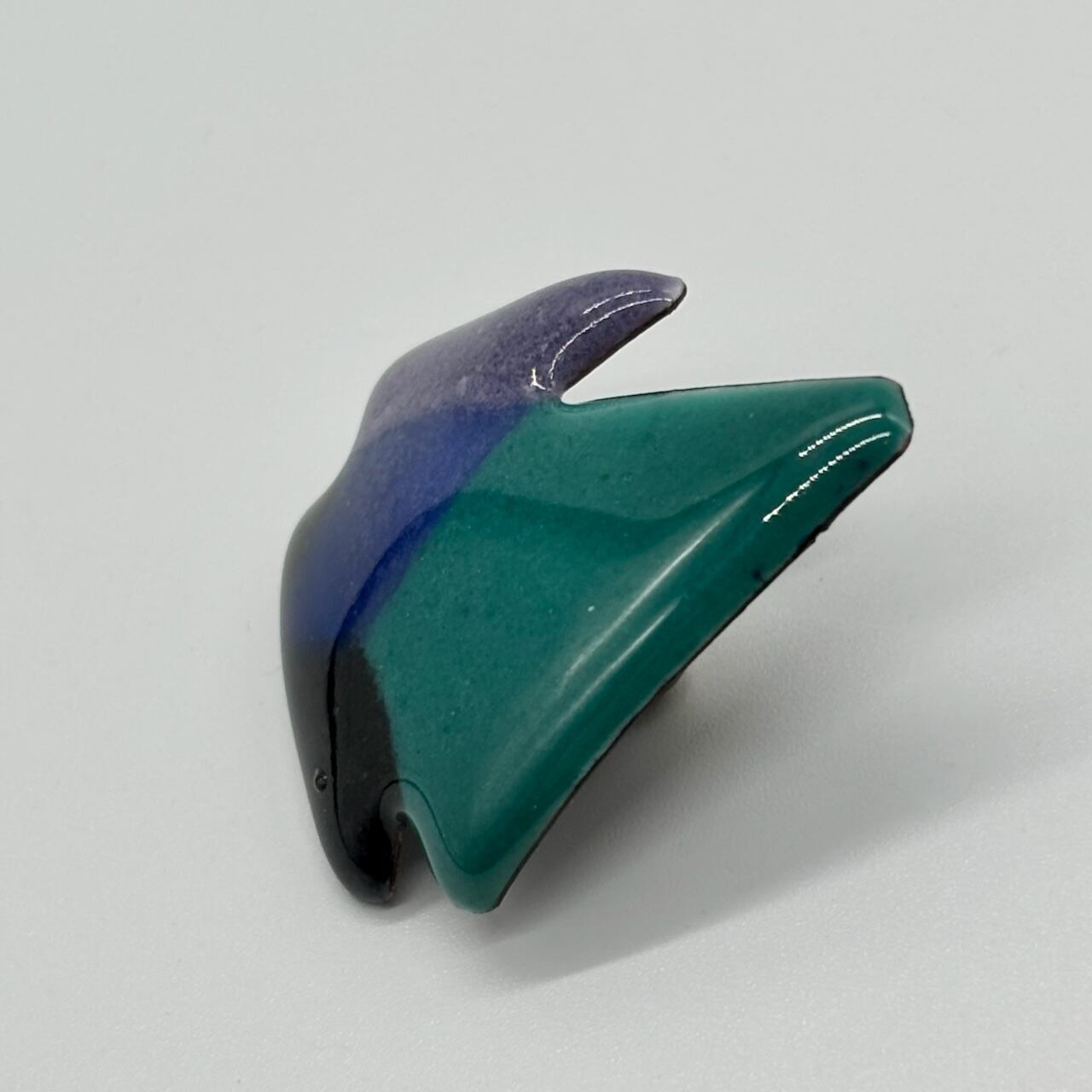銅板などの金属素地にガラス釉薬を盛りつけ