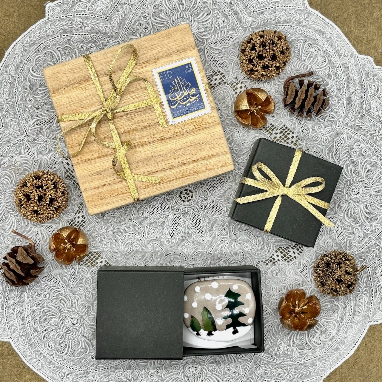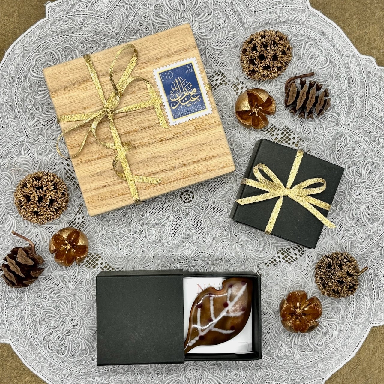 ・アクセサリーはクラフト紙袋に毛糸リボン